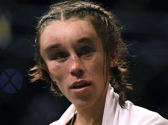 Tak wyglądała Joanna Jędrzejczyk po swojej pierwszej, legendarnej bitwie z Weili Zhang. Starcie przeszło do historii – prezes UFC uznał, że musi trafić do Hall of Fame, bo była to jedna z najlepszych walk, jakie widział w życiu.