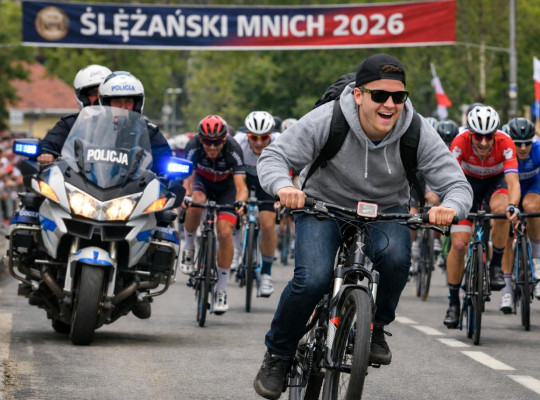 Mężczyzna uciekał przed policją z taką werwą, że zaczął wysuwać się na prowadzenie wyścigu kolarskiego, który odbywał się przy okazji profesjonalnych zawodów "Ślężański Mnich 2026". "Jego dynamiczna jazda sprawiła, że przez chwilę znajdował się w czołówce wyścigu, niemalże 'stając na podium' wśród zawodników" - podała policja.